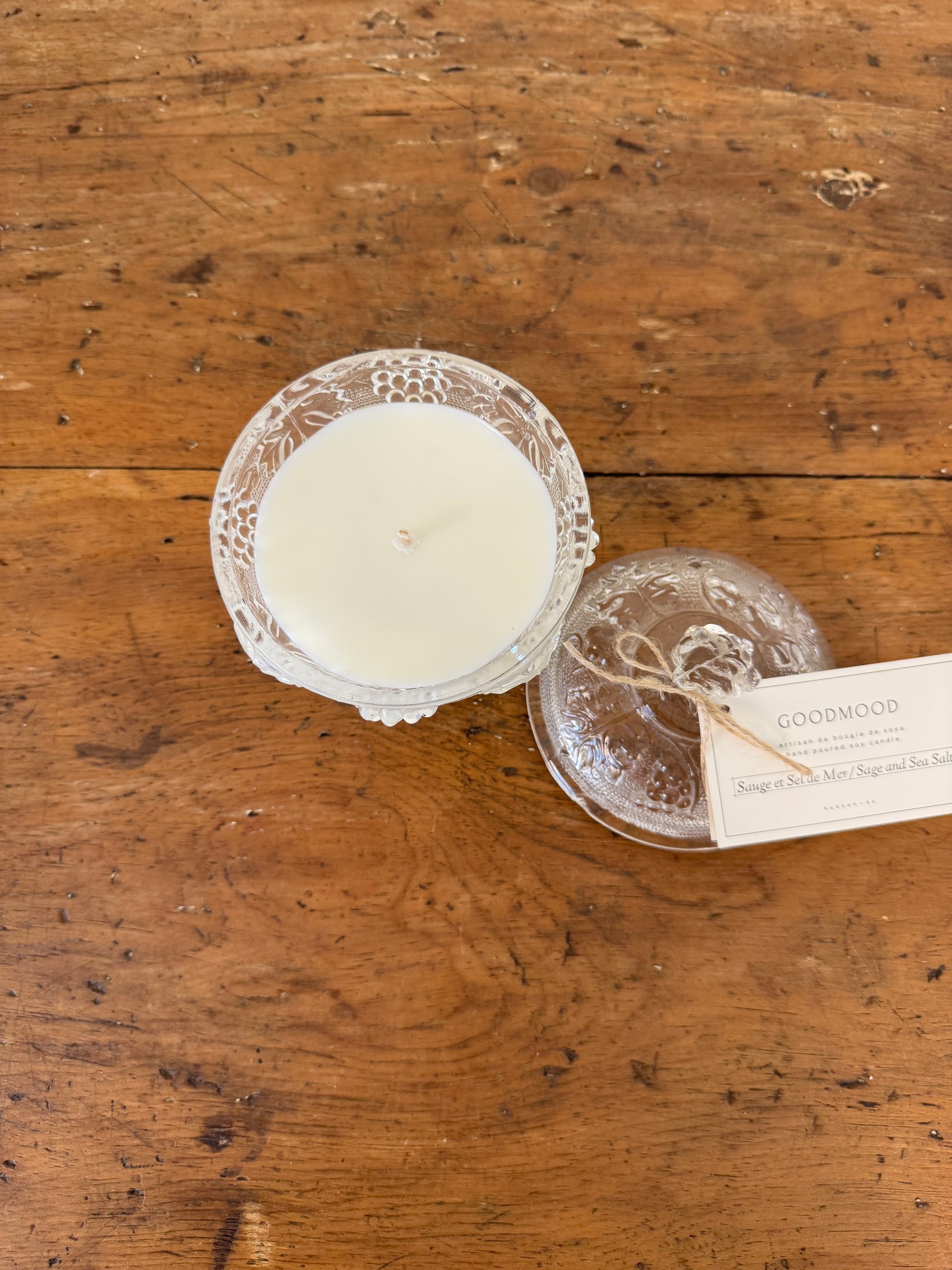 GoodMood candles are crafted with 100% natural soy wax and chemical-free fragrance, are hand-poured into Marché Attic & Oak’s curated vintage glass vessels.