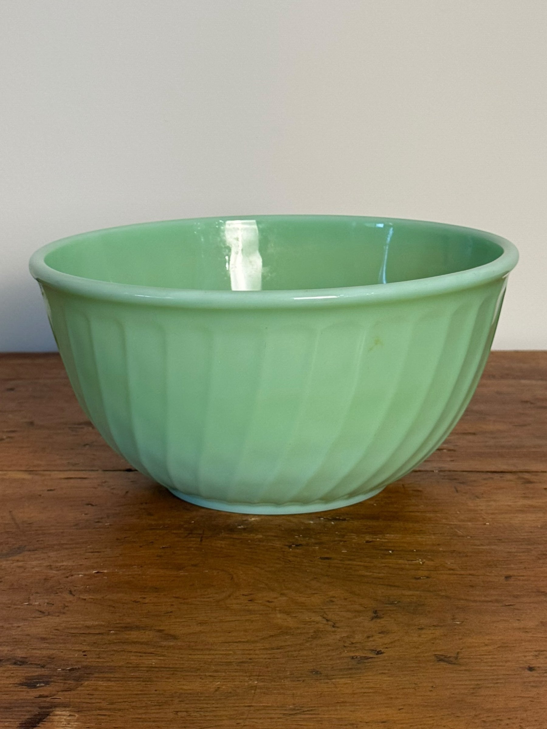 Vintage 1950’s anchor hocking FireKing 9 inch bowl in Jadeite.